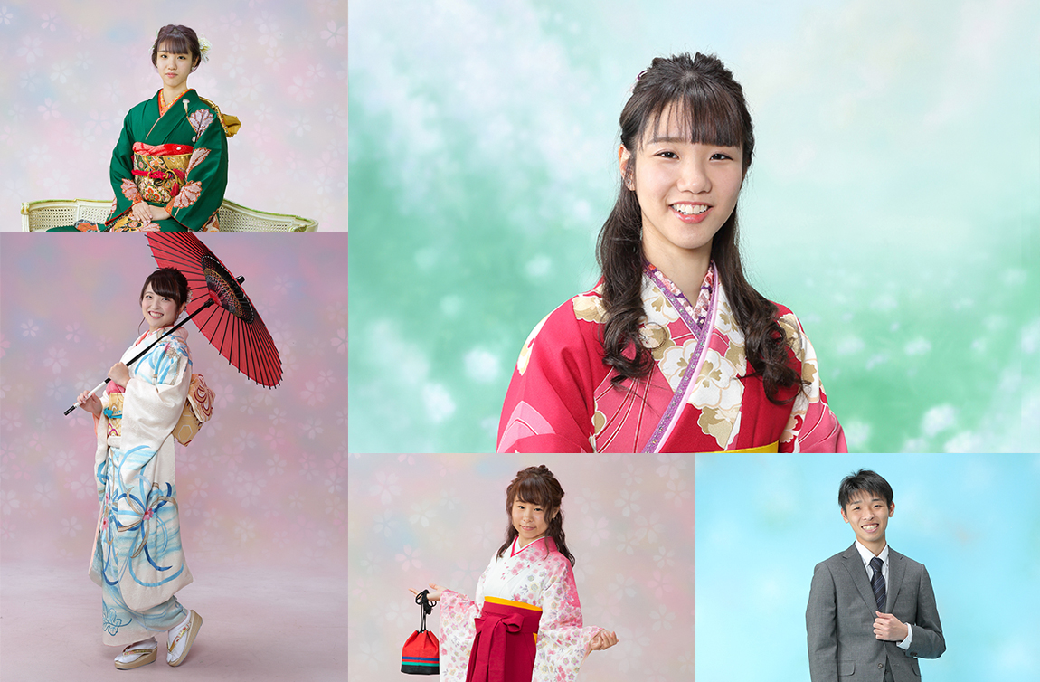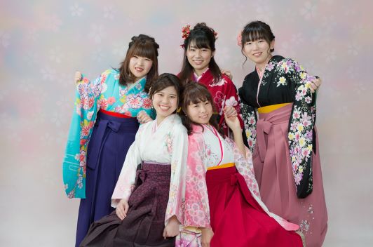 卒業式当日にスタジオで友達たちと撮影してみませんか?卒業袴のレンタルもございます。2人以上でご来店の場合、グループ写真をプレゼントさせていただきます。