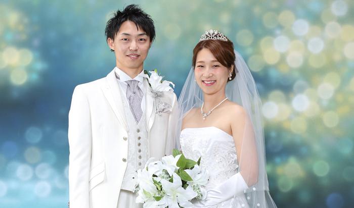 当店スタジオにて前撮り撮影いたします。 衣装の変更もしやすく、天候に左右されることがないので、リラックスした状態で撮影していただけます。