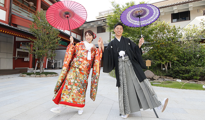 神社や各名所などお客様のご希望に合わせてロケーション撮影させていただきます。 定番の場所だけでなく、お二人の思い出の場所など様々な場所で撮影可能です。